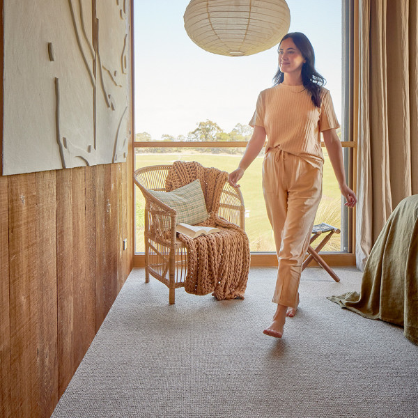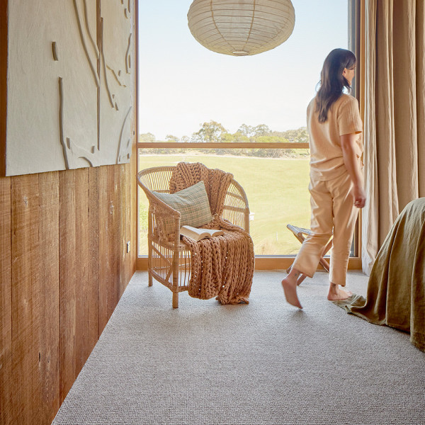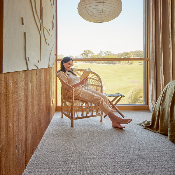 The flooring is finished in Feltex Mackinnon Pass in 550 Sandfly Point, a premium loop pile wool carpet that brings an added sense of softness and warmth underfoot. Its neutral tone enhances the room’s natural palette, while the dense wool fibres help regulate temperature and absorb sound - ideal for creating a quiet, calming bedroom retreat. Made from renewable New Zealand wool, this carpet offers luxury that feels as good as it looks - durable, breathable, and crafted for long-lasting comfort.