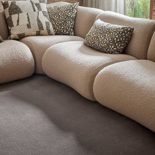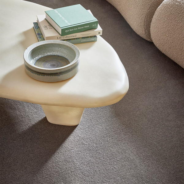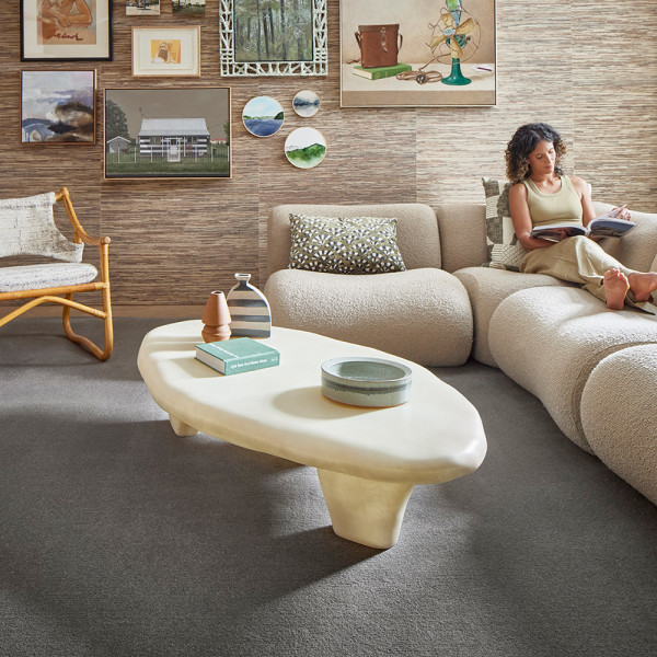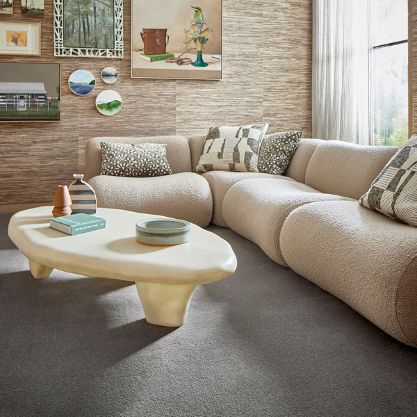 The rich charcoal tone adds depth to the neutral palette and complements the room’s sculptural lines. With its luxurious feel underfoot and low-maintenance performance, Dream Shadow is a smart, stylish foundation that enhances the architectural character of the space while creating a warm, welcoming atmosphere.